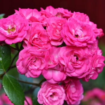 Даже в полутени этот сорт демонстрирует обилие темно-зеленой блестящей листвы, которая выгодно подчеркивает яркость цветков. Роза Динки отличается непрерывным цветением и достигает высоты 100-120 см, при этом ширина куста может достигать до 120 см.